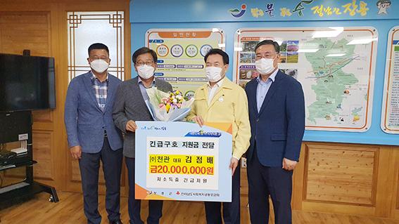 장흥군 대덕읍 산외동 출신 ㈜천관 김점배 대표가 어려운 이웃을 위해 사용해 달라며 26일 고향에 2000만원을 기탁했다.
