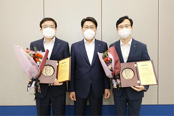 수여식에서 최정우 회장은 “포스코명장 두 분의 노력과 열정이 확산되어 많은 직원들이 명장에 도전했으면 좋겠다. 앞으로도 회사 경쟁력의 원천인 '기술인력'의 롤모델로서 현장 경쟁력 강화를 선도하고 기업시민의 역할을 리딩해주길 바란다”고 당부했다.