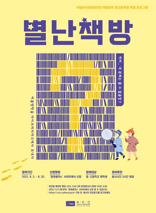 국립아시아문화전당은 여름방학을 맞이해 지난 3일부터 20일까지 라이브러리파크에서 중·고등학생을 대상으로 ‘별난책방’을 운영한고 5일 밝혔다.