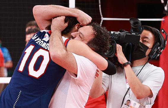 대한민국 스테파노 라바리니 감독과 김연경이 4일 오전 일본 도쿄 아리아케 아레나에서 열린 도쿄올림픽 여자배구 8강전 대한민국과 터키의 경기에서 승리하며 4강행을 확정 지은 뒤 포옹하고 있다. 2021.08.04.
