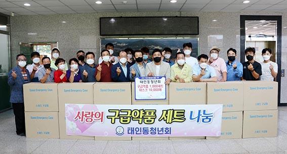 광양시 태인동청년회는 계속되는 폭염과 코로나19 위기 극복을 위해 5만 원 상당의 구급약품 세트 1000세트와 마스크 1만매 등 5000만 원 상당의 물품을 광양시사랑나눔복지재단에 전달했다.