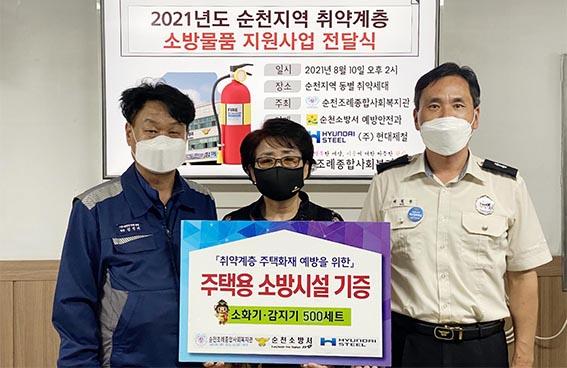 현대제철 순천공장은 주택용소방시설 500세트를 지난 10일 순천조례사회복지관에서 순천소방서에 기증했다.