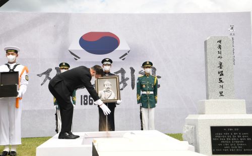 문 대통령은 따뜻한 고국 품에서 진정한 안식에 들어가는 홍 장군의 모습을 보며 감정에 북받치는 듯, 정성껏 준비한 추모사를 제대로 잇지 못했다. 독립전쟁 첫 승리를 이끌고도 삶의 터전을 제대로 찾지 못한 채 떠돌아야 했던 홍 장군의 슬픈 생을 떠올리며 솟구치는 뜨거움을 안으로 삼켜야 했다.