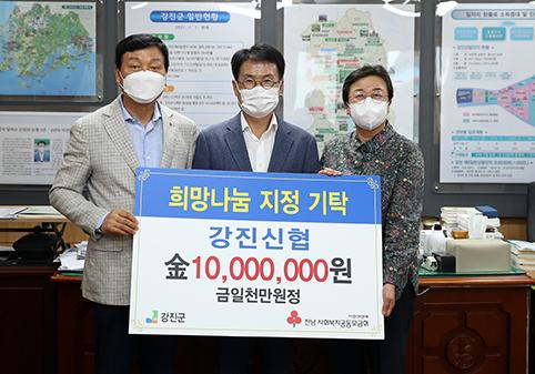 한편 강진신협은 20년 자원봉사 우수기관으로 국무총리 표창을 수상했으며, 2007년부터 인재육성기금 4600만 원을 기탁하고, 취약계층 공부방 만들어주기, '행복한 집 프로젝트' 등으로 나눔 활동을 적극적으로 실천하고 있다. 강진신협은 오는 9월 15일에 장흥지점을 개점할 예정이다.