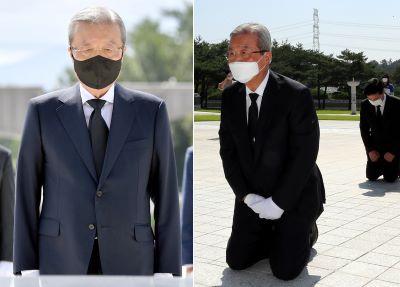 1년 전 국립5·18민주묘지에서 무릎을 꿇었던 김종인 전 국민의힘 비상대책위원장이 19일 다시 이곳을 참배했다.
