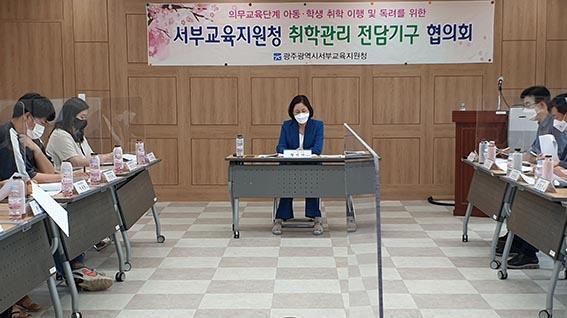 23일 광주서부교육지원청에 따르면 지난 20일 광주서부교육지원청 소회의실에서 취학관리 전담기구 협의회를 개최했다. 취학관리 전담기구는 미취학 및 장기결석 학생을 관리하고, 취학 면제·유예 제도의 운영 상황을 점검하는 등 취학 관리를 총괄하는 기구다.