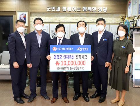 ㈜삼진일렉스 김성관 회장이 지난 24일 영광군을 방문해 지역인재육성에 써 달라며 장학금 1000만 원을 기탁했다.