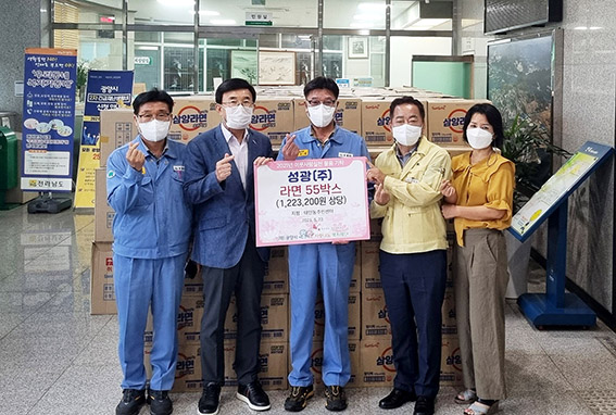 김종현 성광(주) 대표가 광양시 태인동에 이웃사랑 실천의 일환으로 130만 원 상당의 라면 55박스를 광양시사랑나눔복지재단을 통해 지난 23일 전달했다.