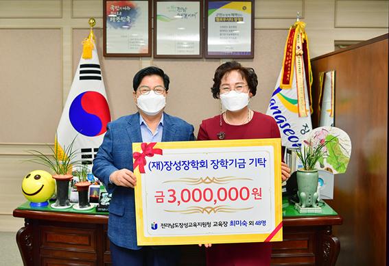 전남도장성교육지원청은 25일 재단법인 장성장학회에 장학기금 300만원을 기탁했다.