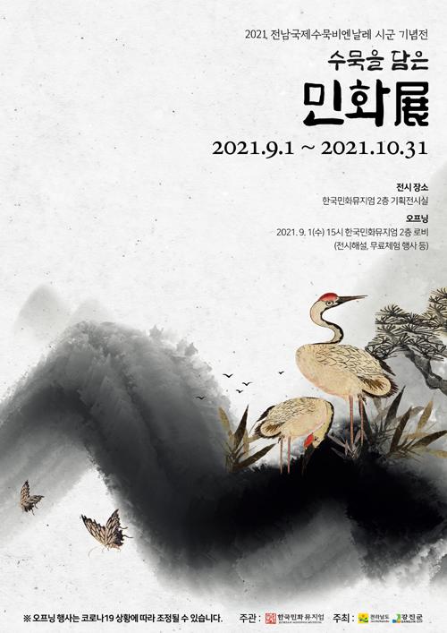 강진군 청자촌에 위치한 한국민화뮤지엄은 다음달 1일부터 10월31일까지 2달여동안 강진 청자촌 기획전시실에서 2021전남국제수묵비엔날레와 연계된 ‘수묵을 담은 민화’전을 선보인다고 30일 밝혔다.