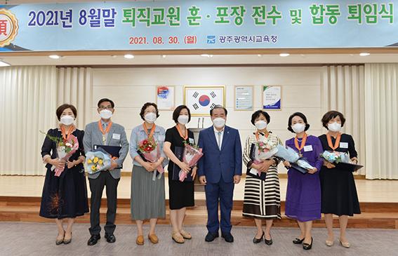 광주시교육청이 30일 오전 10시 대회의실에서 ‘2021년도 8월말 퇴직교원 훈·포장 전수 및 합동 퇴임식’을 개최했다.