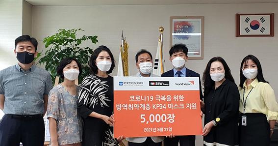 월드비전 광주전남지역본부가 31일 광주서부교육지원청을 방문해 특수학교 학생들의 건강한 학교생활을 위한 코로나19 예방 KF94 마스크 5,000장을 전달했다.