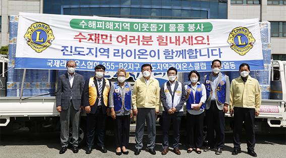 국제라이온스협회 355-B2지구 진도지역 라이온스클럽이 지난 7월초 집중호우 피해로 어려움을 겪고 있는 진도군의 수재민들을 위로하기 위해 화장지 등 400여 만원 상당의 생필품을 최근 전달했다.