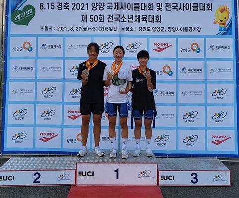 지난달 27일부터 28일까지 강원도 양양사이클경기장에서 열린 제50회 전국소년체육대회에서 빛가람중학교 자전거부는 2km 단체추발(신민서, 신희원, 홍윤화) 및 단체스프린트(신민서, 신희원, 홍윤화)에서 각각 2위의 성과를 거두며 종합준우승과 최우수지도자상(코치 김채현)을 수상하는 쾌거를 이뤘다. 특히 최고의 팀워크를 바탕으로 이뤄낸 결과여서 앞으로의 선전이 기대된다.