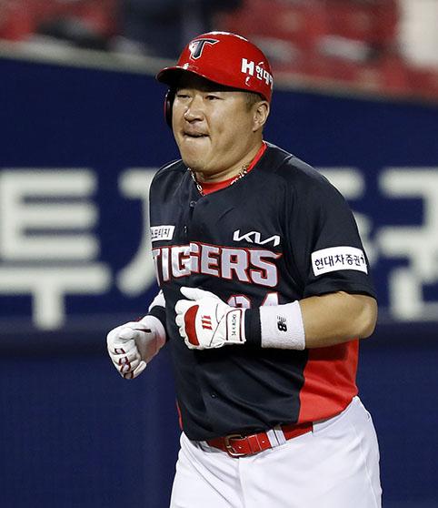 22일 오후 서울 송파구 잠실야구장에서 열린 '2021 KBO리그' LG 트윈스와 KIA 타이거즈 경기, 4회초 2사 주자없는 상황 KIA 최형우가 솔로홈런을 친 뒤 그라운드를 돌고 있다. 2021.04.22.