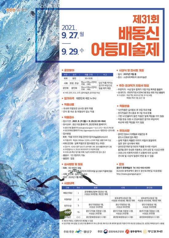 광주 광산구는 지역 출신 배동신 화백을 기념하고 미술 인재에게 창작활동 기회를 제공하고자 ‘제31회 배동신 어등미술제’를 개최한다고 26일 밝혔다.