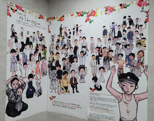 여순사건 관련 소장도서는 1948, 칼 마이던스가 본 여순사건 및 논문집 등 여수지역사회연구소 저서가 많고, 그림 전시는 지역의 초·중·고등학생들로 구성된 몽이네예나눔 회원들의 재능기부로 마련됐다.