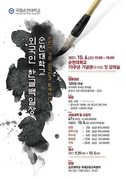 순천대학교는 575돌 한글날을 맞아 오는 6일 오후 3시 순천시 거주 외국인과 함께하는‘외국인 한글백일장’을 개최한다.