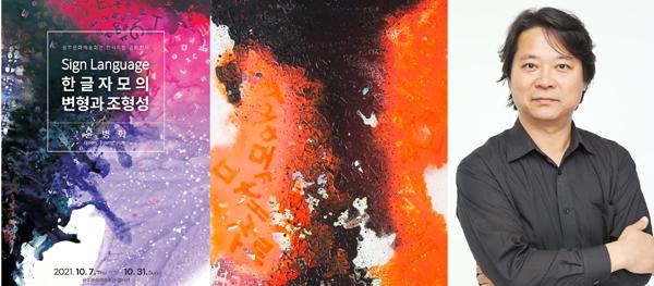광주문화예술회관 관계자는 “작품에 등장하는 문자나 기호적 요소, 한글의 자모, 영어의 알파벳은 문화병존 시대의 일상적 현상, 이성적 현실, 감성적 상태, 가상공간을 의미한다”고 밝혔다. 이어 “이번 전시는 무분별한 비속어와 신조어 등으로 왜곡, 전락한 한글의 중요성과 가치를 다시 한번 깨닫는 계기가 될 것이다”고 설명했다. /권형안 기자