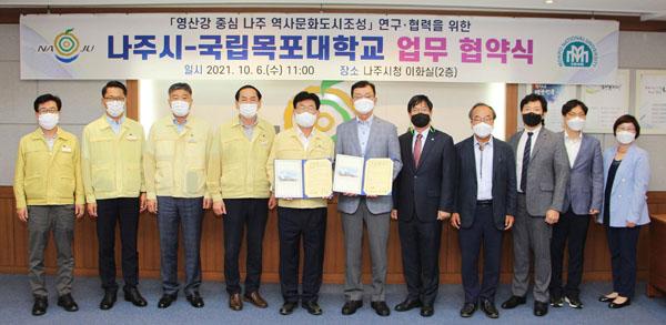 나주시는 6일 국립목포대학교(총장 박민서)와 ‘영산강 중심, 나주 역사문화도시 조성’ 연구·협력을 위한 업무협약을 체결했다고 밝혔다.