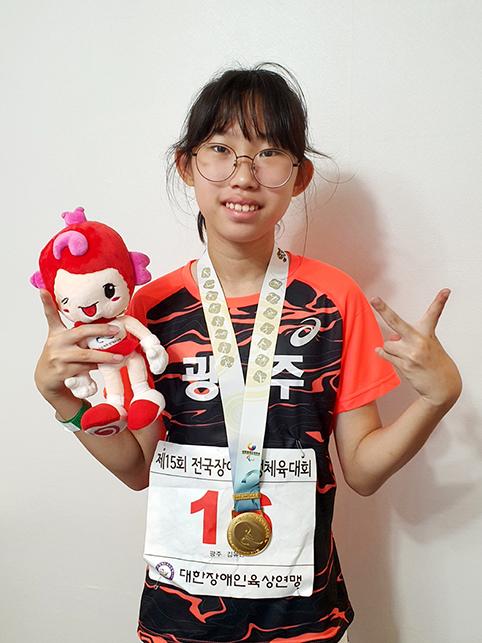 건국초 6학년 1반 김유은 학생이 5~7일 전북 익산 종합운동장에서 열린 제15회 전국장애학생체육대회 육상부문에서 2관왕을 차지했다.