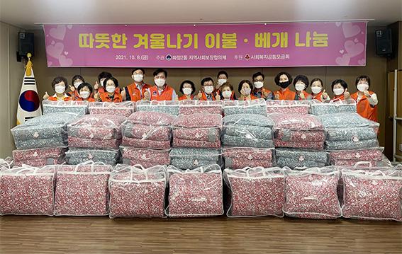 광주 서구 화정2동 지역사회보장협의체가 다가오는 겨울을 맞아 저소득 취약계층 30세대에 따뜻한 겨울을 나실 수 있도록 겨울이불과 베개를 전달했다.