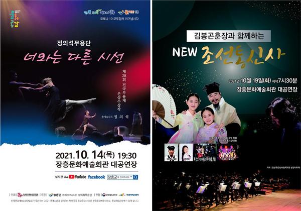 장흥군은 14일 ‘제28회 전통무용제 너와는 다른 시선’, 오는 19일 ‘김봉곤 훈장과 함께하는 NEW 조선통신사’공연을 오후 7시 30분 장흥군 공식 유튜브, 페이스북 채널을 통해 온라인으로 생방송 한다고 밝혔다.