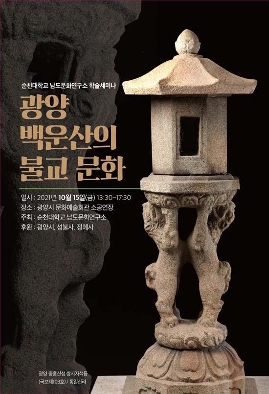 순천대학교 남도문화연구소는 오는 15일 오후 1시 30분부터 광양시 문화예술회관에서 ‘광양 백운산의 불교문화’라는 주제로 학술 세미나를 개최한다.