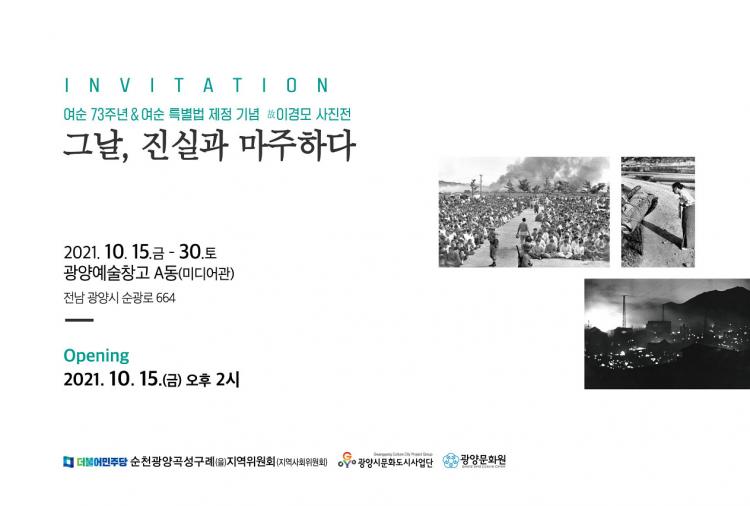 광양시는 오는 15~30일 광양예술창고에서 ‘여순사건 특별법’ 제정 기념으로 故 이경모 선생의 사진전 ‘그날, 진실을 마주하다’를 개최한다.