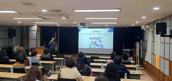 광주교육연구정보원이 지난 19일 소강당에서 중학교 진로전담교사를 대상으로 고교학점제 관련 연수를 실시했다.
