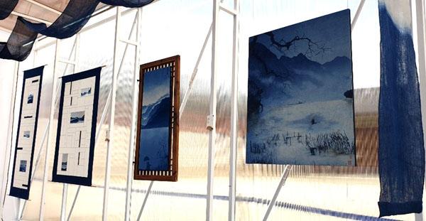 재단은 ‘쪽빛 하늘을 담은 궁, 나주’를 주제로 경복궁 근정전 앞마당 전시실에서 푸르고 화려한 색감의 쪽 염색 천과 전통 발, 천연염색 생활용품 등을 선보여 관람객의 눈길을 사로잡고 있다.