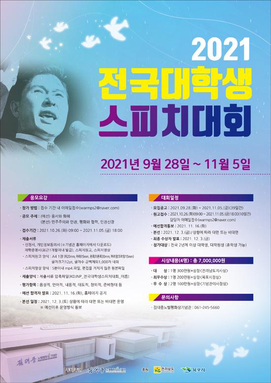 김대중노벨평화상 기념관이 전국 대학생 대상 스피치대회를 개최한다.