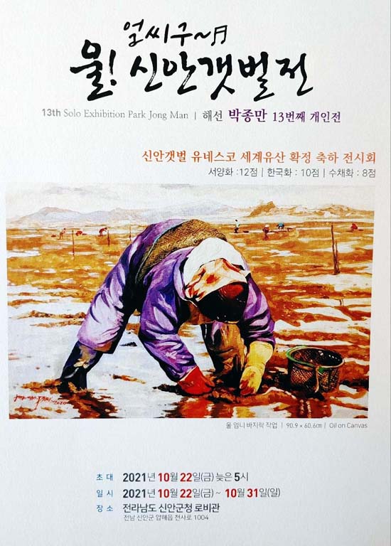신안군은 지난 22일부터 31일까지 신안군청사 로비에서 해선 박종만 화가의 ‘얼씨구 울! 신안갯벌전’ 전시회를 갖는다고 밝혔다.