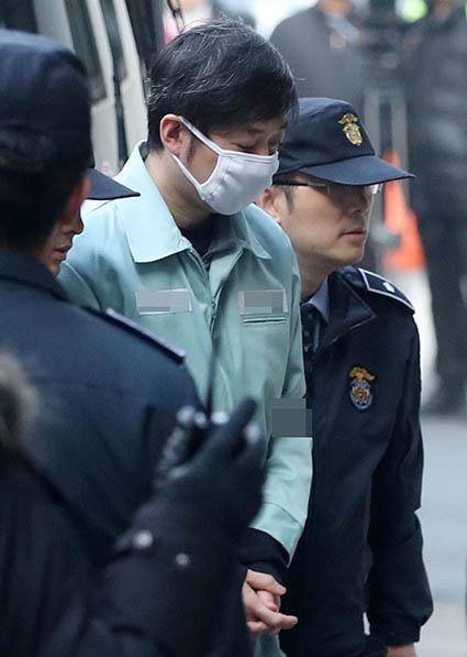 조재범 전 쇼트트랙 국가대표 코치가 23일 오전 경기 수원시 영통구 수원지방법원에서 심석희 선수를 비롯한 쇼트트랙 선수 4명을 상습 폭행 등 사건에 대한 항소심 공판을 받기 위해 호송차서 내려 법정으로 향하고 있다. 2019.01.23.