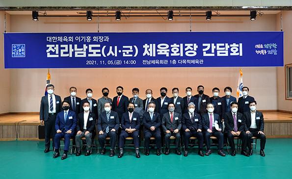 전남도체육회는 5일, 전남체육회관 1층 다목적체육관에서 대한체육회 이기흥 회장을 비롯해, 김재무 회장, 시군체육회협의회 이상대(순천시체육회장) 회장 등 22개 시·군체육회장이 참석한 가운데 대한체육회장-전남도(시·군)체육회장 간담회를 성황리에 마무리 했다고 밝혔다.
