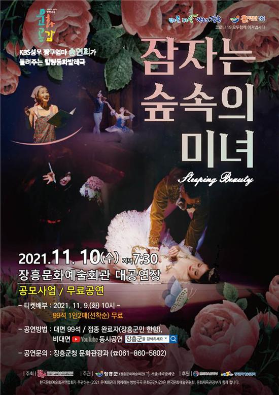 관람료는 전석 무료로 접종 구분 없이 5세 이상이면 누구나 관람할 수 있으며, 코로나19 외부 유입 방지를 위해 예매는 9일 10시부터 장흥문화예술회관 대공연장에서 1인 2매 선착순으로 장흥군민에게 99석 제한 배부할 계획이다. /장흥=임민기 기자