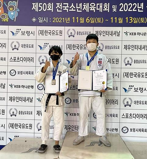 광주체육중 유도부가 지난 6~8일 충남 보령종합체육관에서 개최된 2021 회장기 유도대회 겸 제50회 전국소년체육대회에서 금메달 1개, 은메달 1개를 획득했다.