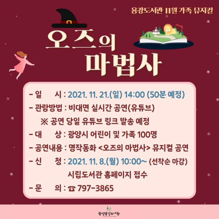 광양용강도서관이 올해 마지막 온 가족이 함께 관람할 수 있는 공연으로 뮤지컬 ‘오즈의 마법사’를 준비했다.