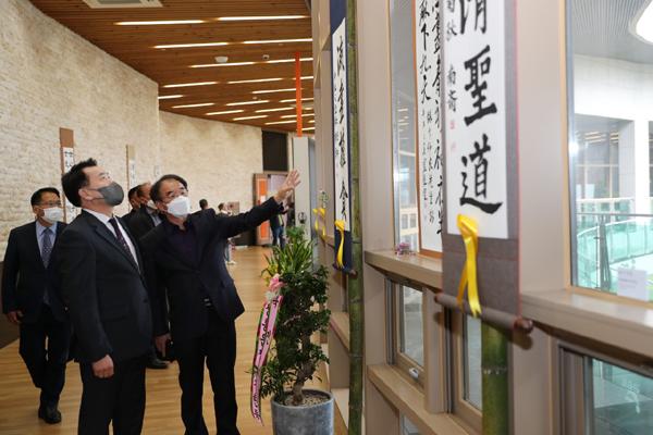 정종순 장흥군수는 “장흥이 서예문화의 중심지로 부상하기를 기원하며 서예문화에 더 큰 날개를 달아 주기 위해 노력하는 장흥필묵회에 감사의 인사를 드린다”며 “기증해 주신 서예 작품도 그 뜻을 기리어 동학 정신 계승·발전을 위해 최선을 다하겠다”고 말했다. /장흥=임민기 기자