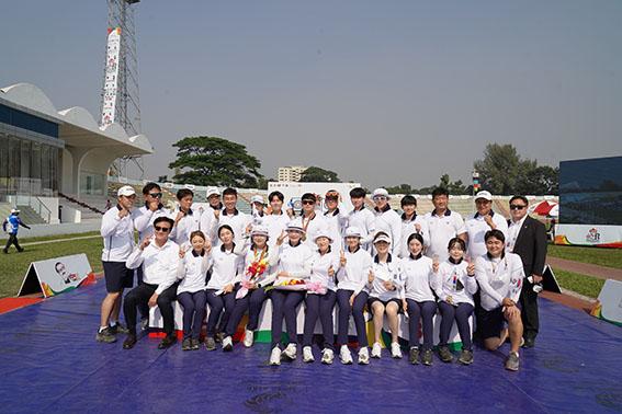 리커브 혼성 단체전 결승에선 유수정과 이승윤이 방글라데시를 6-0으로 꺾고 금메달을 차지했다.