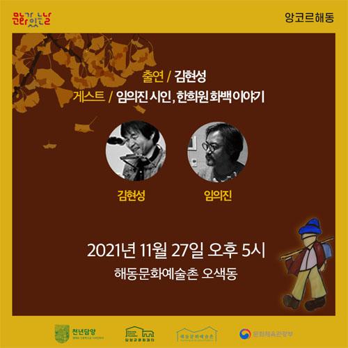 담양 해동문화예술촌은 27일 17시 문화가 있는 날 ‘앙코르 해동’ 공연을 진행한다고 밝혔다.