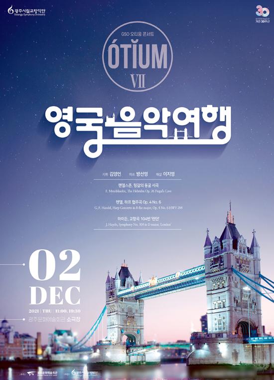 ‘영국 음악여행’을 주제로 열리는 이번 무대는 이지영 음악칼럼니스트가 해설하고 방선영 하피스트 협연, 김경언 광주시향 부지휘자가 지휘한다.