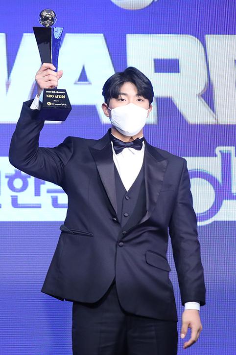 29일 오후 서울 강남구 임피리얼팰리스호텔에서 열린 2021 KBO 시상식에서 신인상 수상자인 KIA타이거즈 이의리 선수가 포즈를 취하고 있다. 2021.11.29.