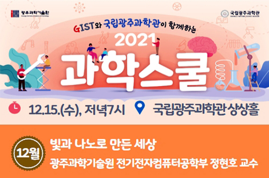 국립광주과학관은 15일 오후 7시 상상홀에서 GIST 전기전자 컴퓨터공학부 정현호 교수를 초청해 ‘빛과 나노로 만든 세상’을 주제로 과학스쿨을 개최한다고 밝혔다.