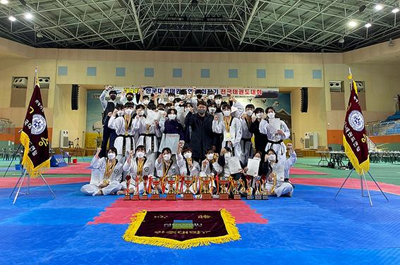 광주대학교가 전국태권도대회에서 단체·개인전 금메달을 휩쓸며 종합우승을 차지했다.