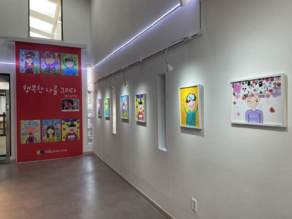 또한, 도서관 1층 부모교육센터 안에 위치하고 있는 ‘기적을 꿈꾸는 전시실’에서는 행복을 그리는 화가인 에바 알머슨의 기법을 활용하여 자신만의 행복한 감정들을 그린 아이들의 행복한 자화상 8작품 등이 전시되어있다. /순천=조순익 기자