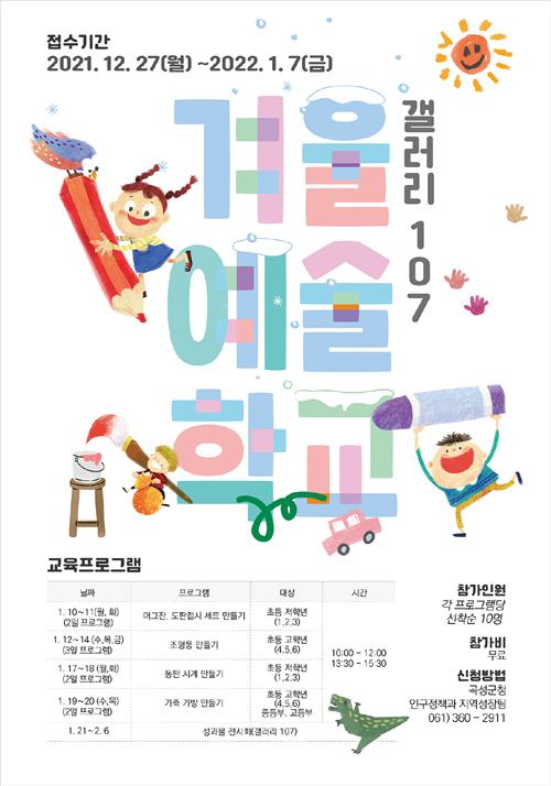 곡성군이 내년 1월 7일까지 갤러리107 겨울예술학교 참가자를 모집하고 있다.