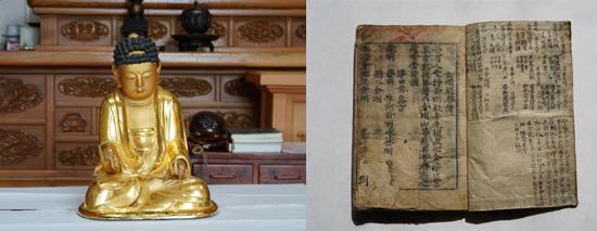 송광사 천자암 목조아미타여래좌상(왼쪽) 용화사 소장 육경합부.