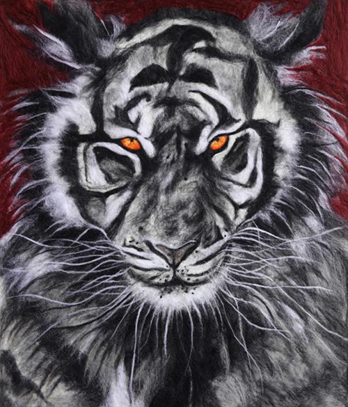 이 중 윤성윤 작가의 작품 ‘범 내려 온다’(제목·사진)는 양모를 이용해 호랑이를 니들 펠트로 표현했다.