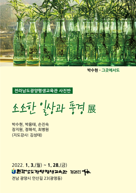 소소한 일상과 풍경展은 광양지역의 일상적인 풍경과 감성을 자극하는 사계절의 자연, 그리고 평범한 사람들의 이야기를 카메라에 고스란히 담은 작품들로 코로나19로 지쳐있는 지역민들에게 마음의 위안과 쉼의 여유를 줄 수 있도록 마련됐다.